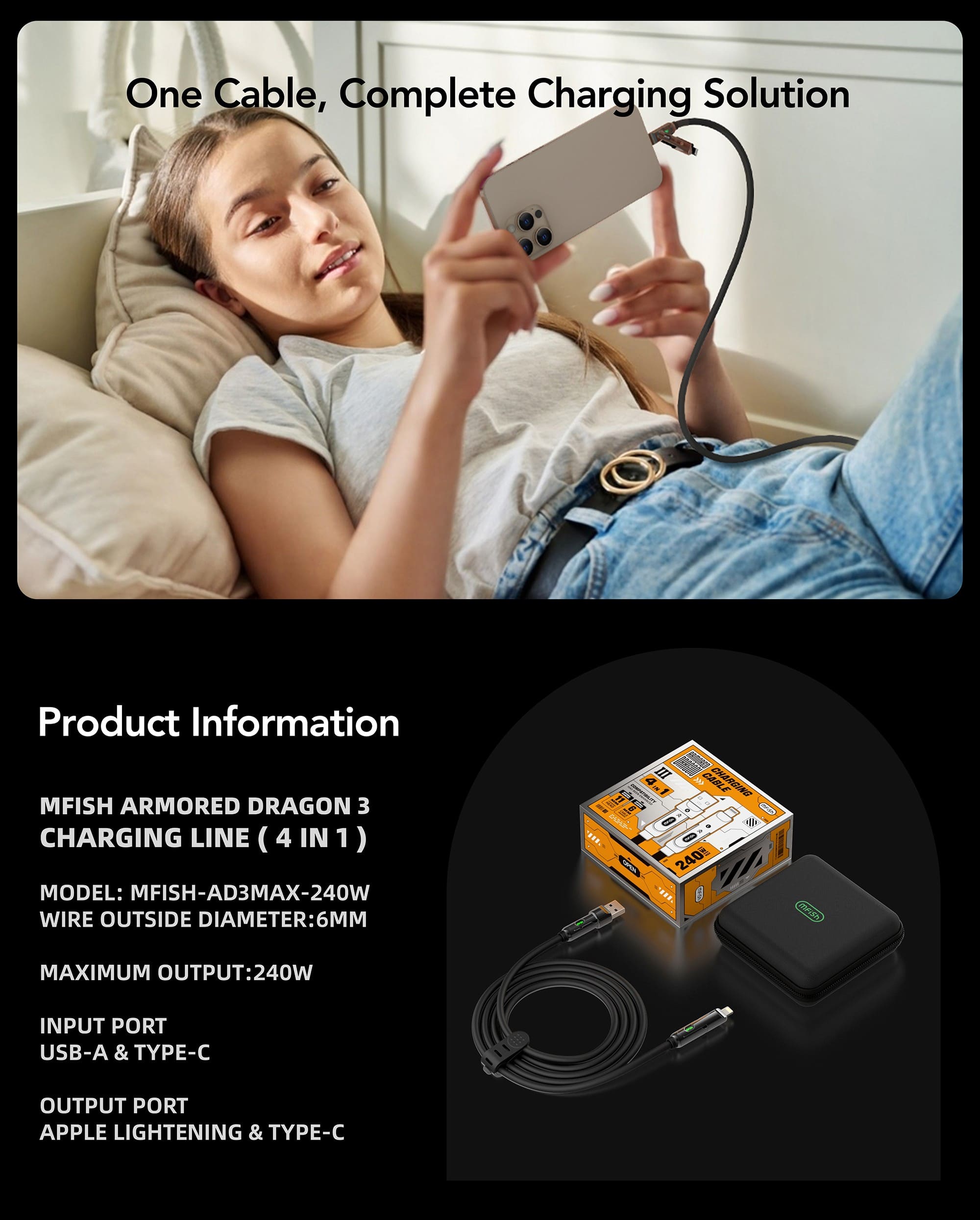 mfish Charge Master Pro – One cable for all, delivering fast charging, data transfer, and seamless connectivity!