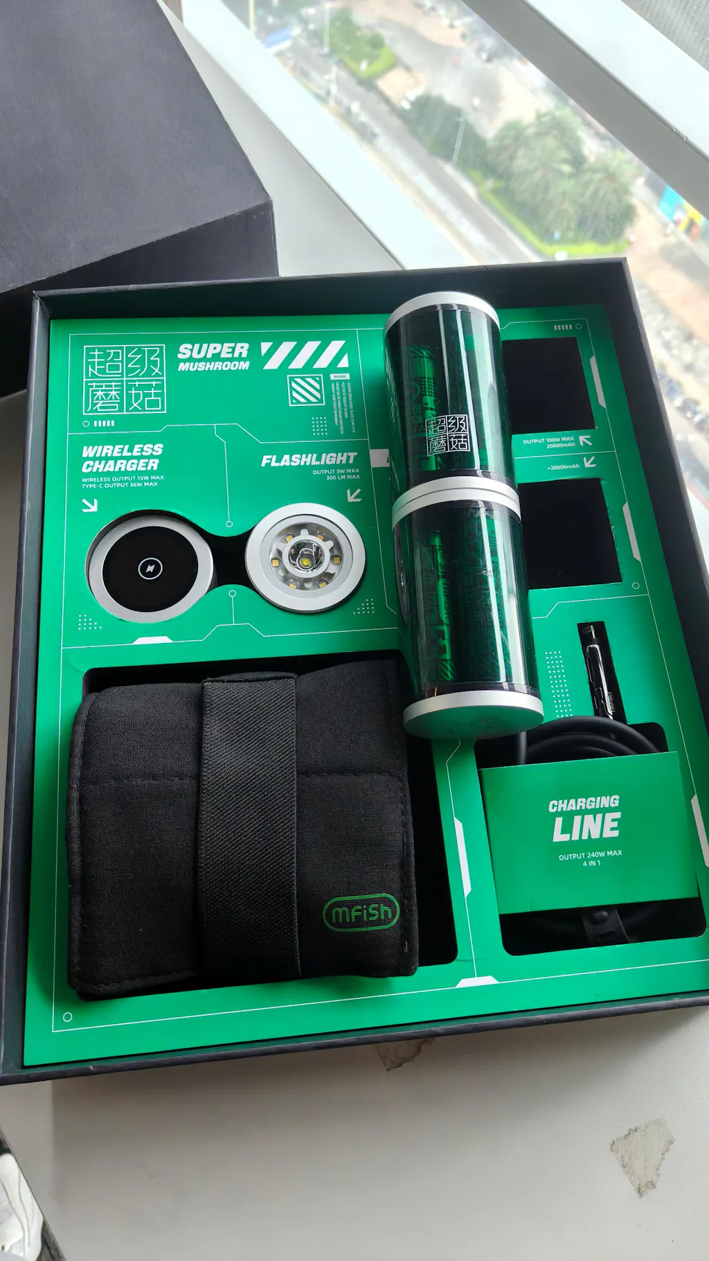 Banco de energía mfish Super Mushroom 20000 mAh 100 W para acampar al aire libre, ligero, con carga inalámbrica y módulo de linterna