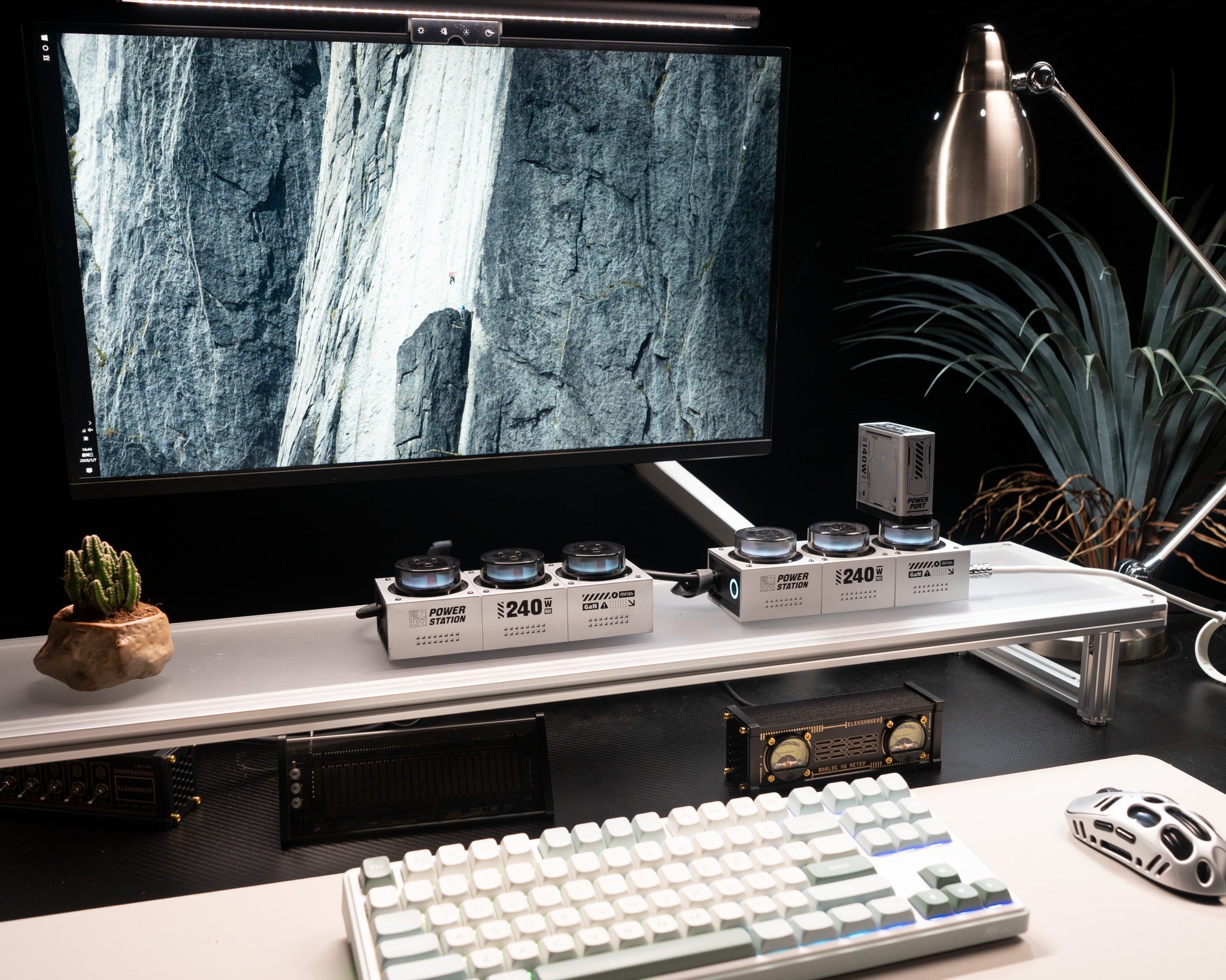 No more cable chaos. E-Tank’s compact, integrated design fits seamlessly into your workspace, studio, or battle station.