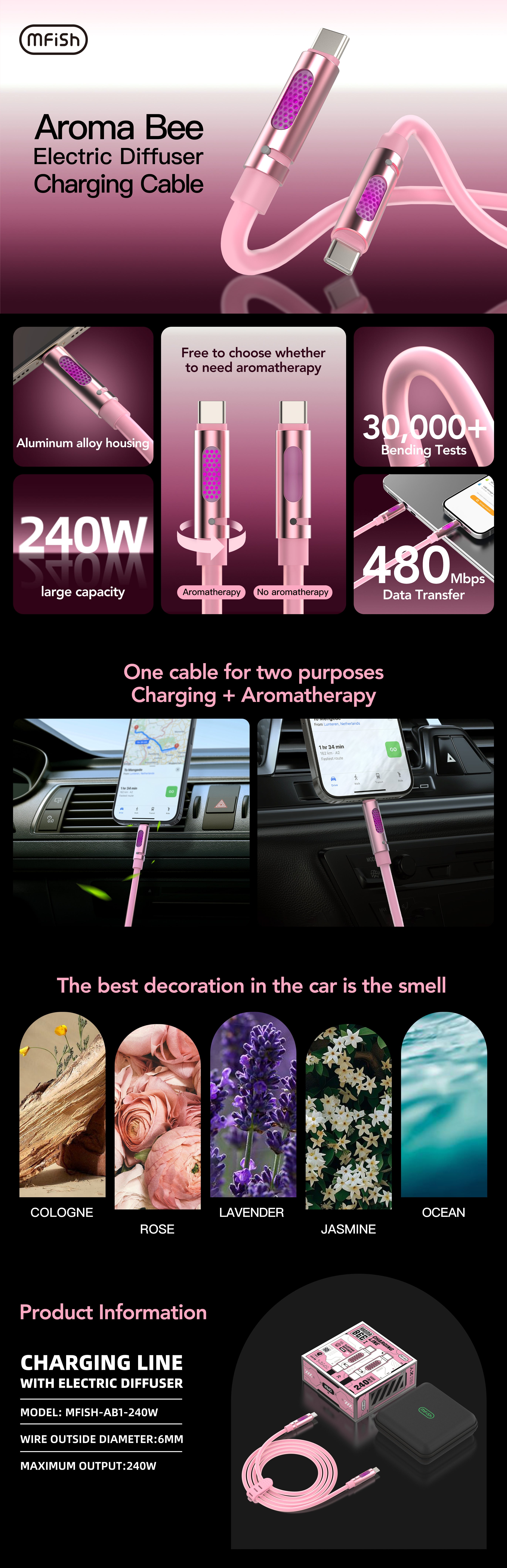 mfish Aroma Bee 240w Fast Charging Cable | Innovative Design Aromatherapy Fast Charging Cable | Suitable for iPhone 16/15, iPad Pro, Samsung, and Laptops