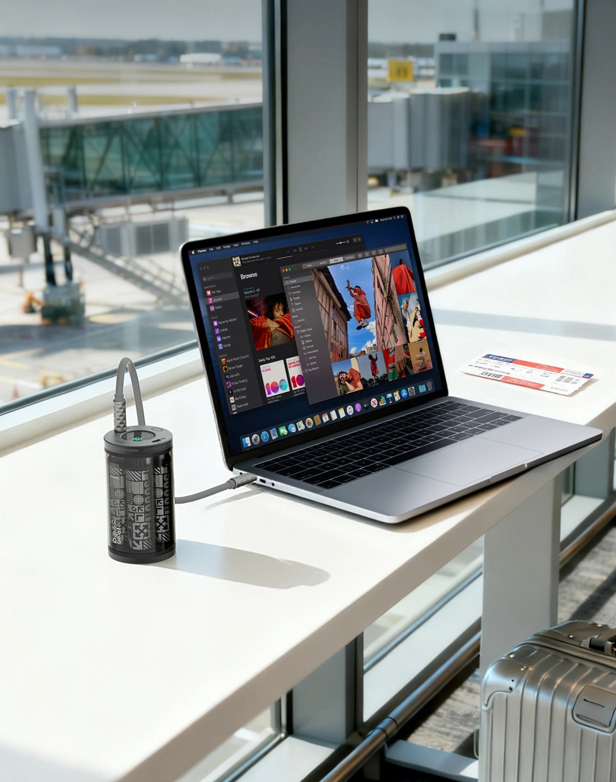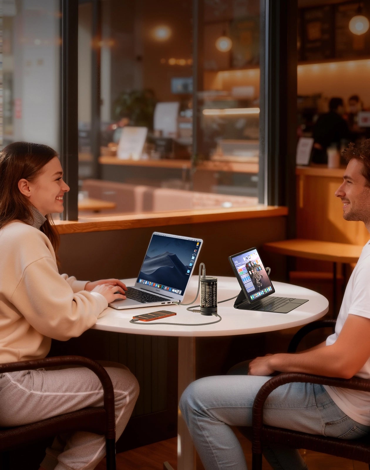Charge your MacBook, tablet, and phone all at once. The 100W USB-C output keeps your laptop running, while the wireless pad powers your phone or earbuds effortlessly.